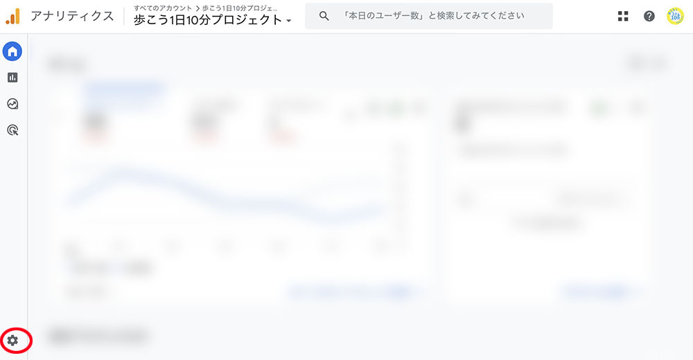 1、Googleアナリティクスのトップ画面左下にある歯車マーク「設定」をクリック